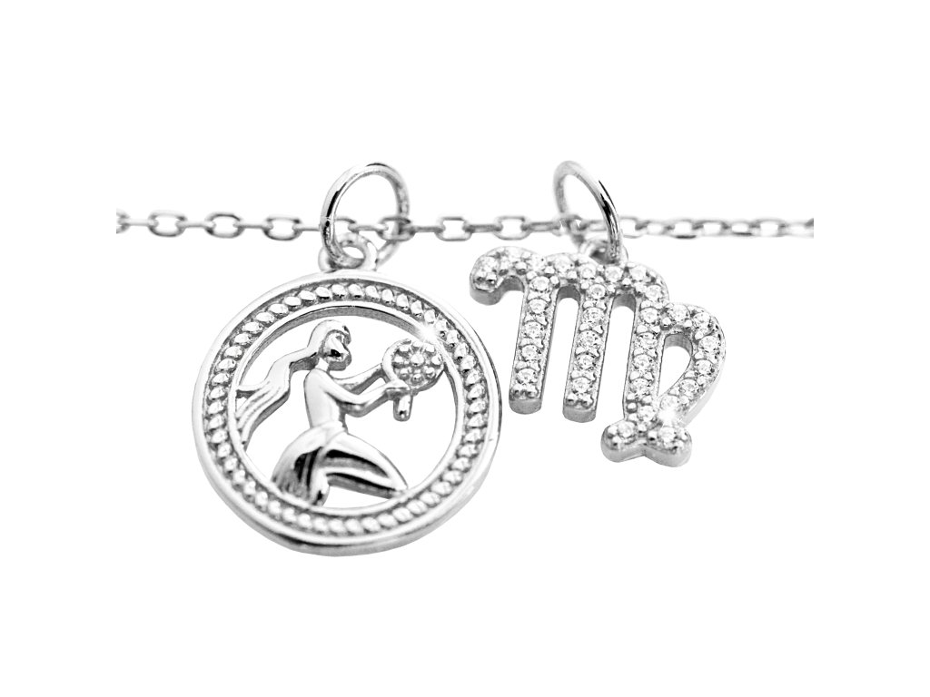 Stříbrný náhrdelník dva přívěsky znamení zvěrokruhu s Kubickými zirkony Panna (Stříbro 925/1000)