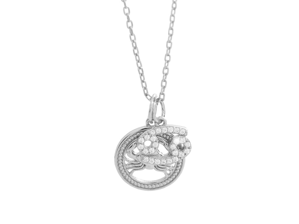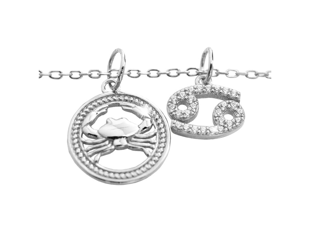 Stříbrný náhrdelník dva přívěsky znamení zvěrokruhu s Kubickými zirkony Rak (Stříbro 925/1000)