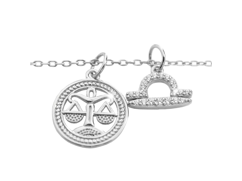 Stříbrný náhrdelník dva přívěsky znamení zvěrokruhu s Kubickými zirkony Váhy (Stříbro 925/1000)