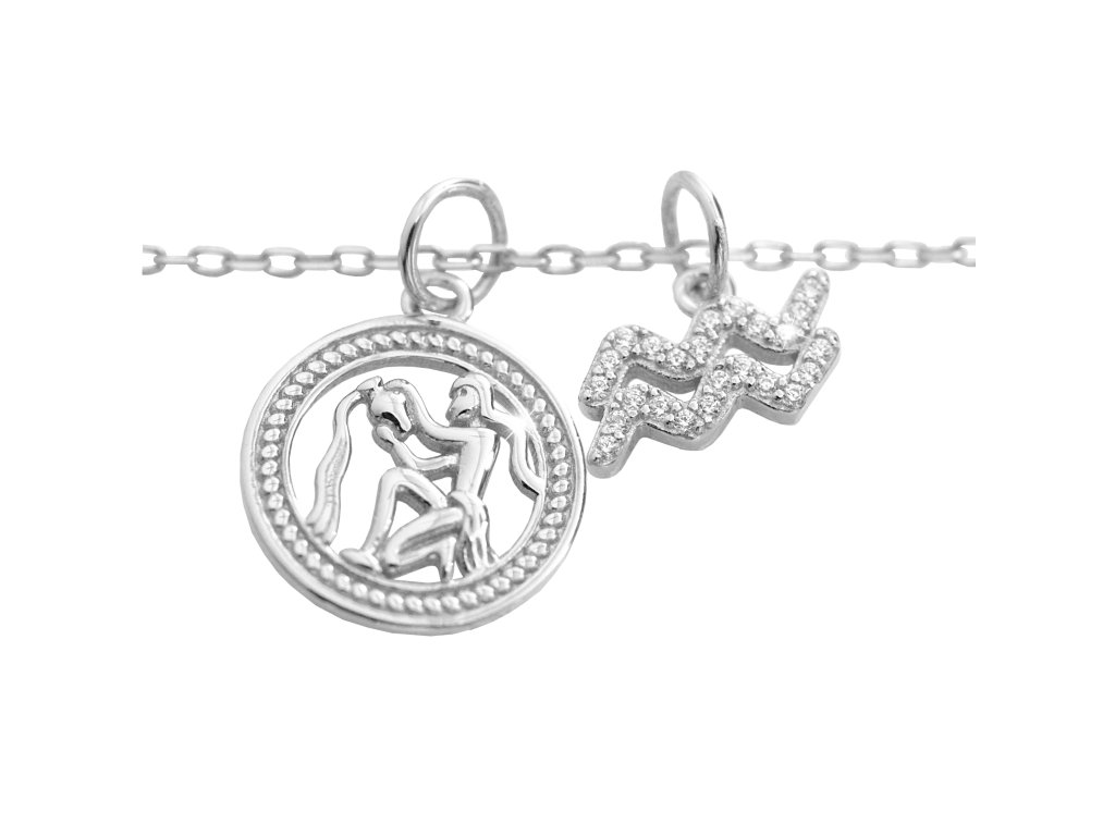 Stříbrný náhrdelník dva přívěsky znamení zvěrokruhu s Kubickými zirkony Vodnář (Stříbro 925/1000)