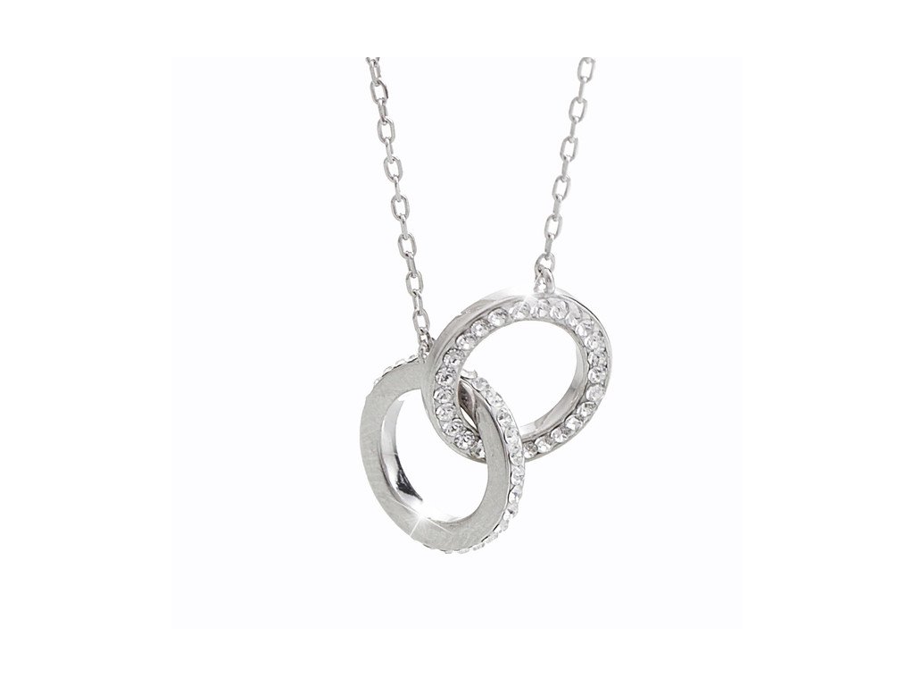 Stříbrný náhrdelník dva propojené kruhy s krystaly Swarovski po obvodu Crystal (Stříbro 925/1000)