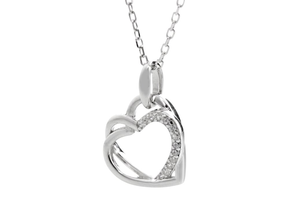 Stříbrný náhrdelník dvě propojená srdce s Kubickými zirkony Crystal (Stříbro 925/1000)