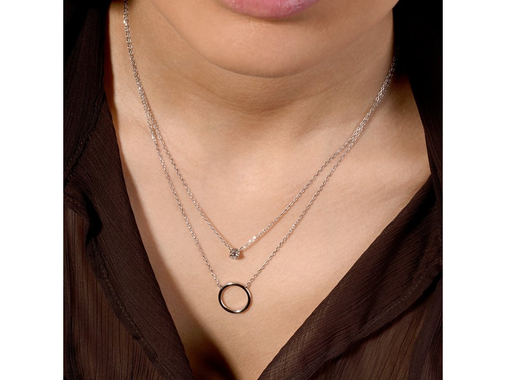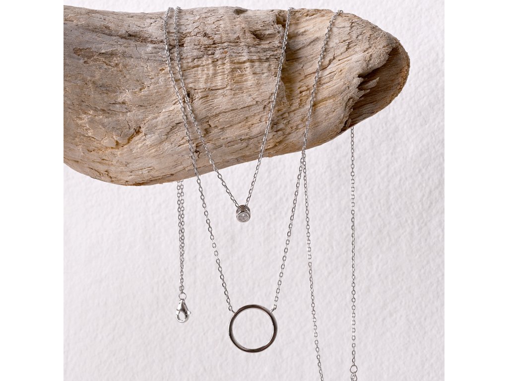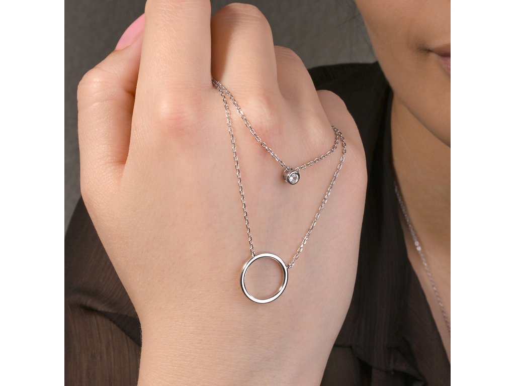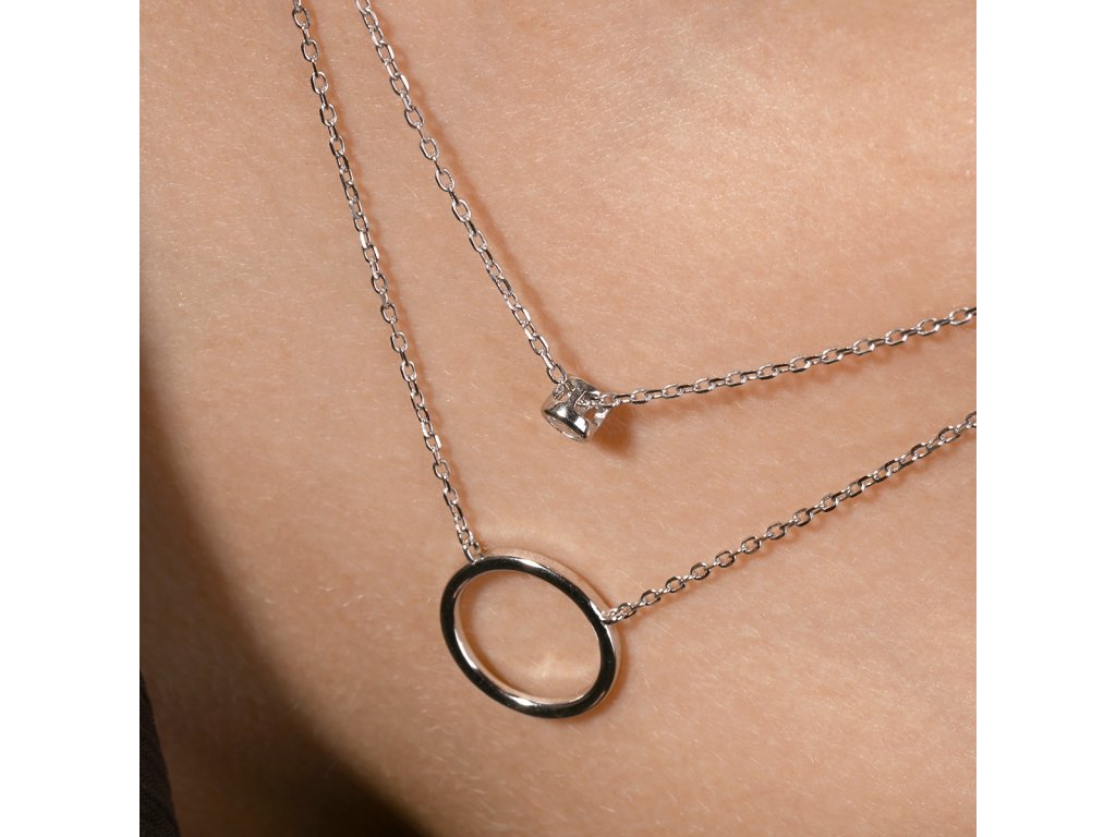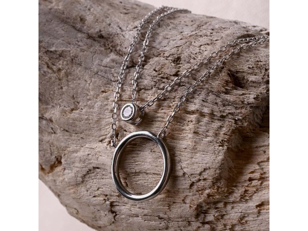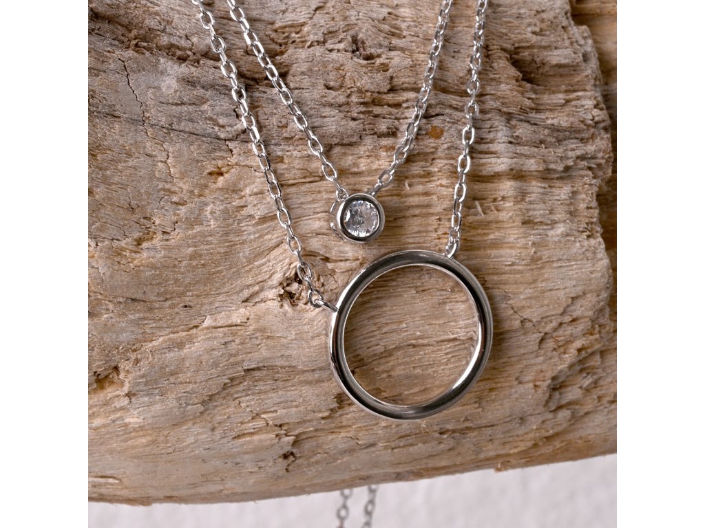 Stříbrný náhrdelník dvojitý řetízek kroužek a zirkon 12111.1