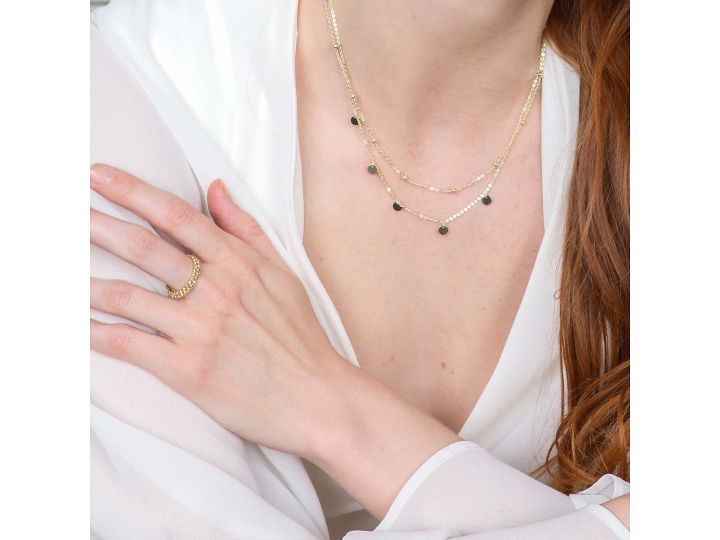 Nový moderní a elegantní styl jsou dvojité náhrdelníky a náramky. Jděte s módou s novým stříbrným náhrdelníkem 62007, jež tvoří dva řetízky, jeden s jemnými kuličkami a druhý s placičkami po obvodu. Stříbrný náhrdelník jemně doplní každodení outfit!