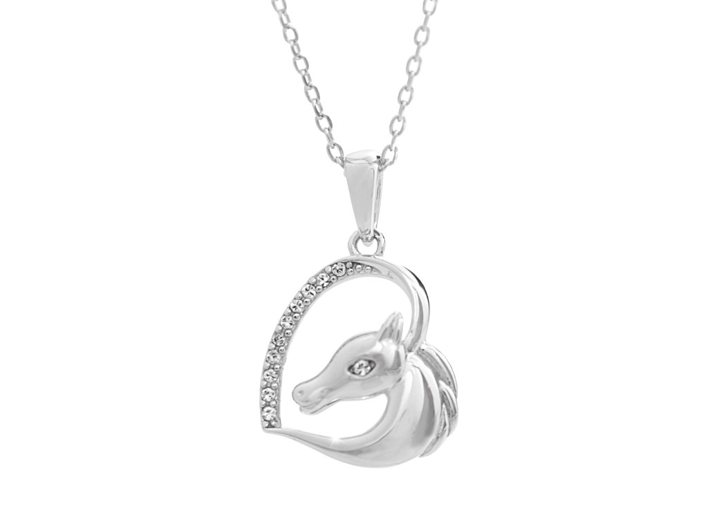Stříbrný náhrdelník koňská hlava v srdci s krystaly Swarovski Crystal (Stříbro 925/1000)