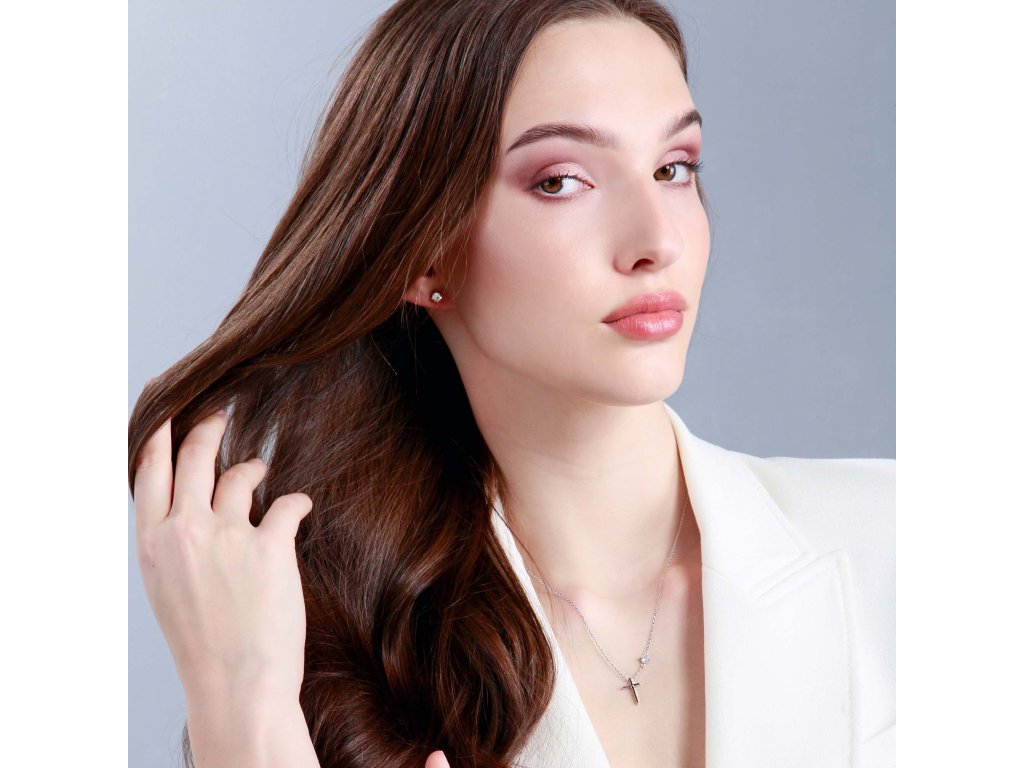 Stříbrný náhrdelník s křížkem a zirkonem skvěle doplní jak elegantní šaty, tak i každodenní outfit.