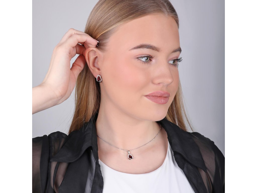 Udělejte radost své manželce nebo přítelkyni s tímto stříbrným náhrdelníkem ve tvaru srdce s granátem uprostřed.