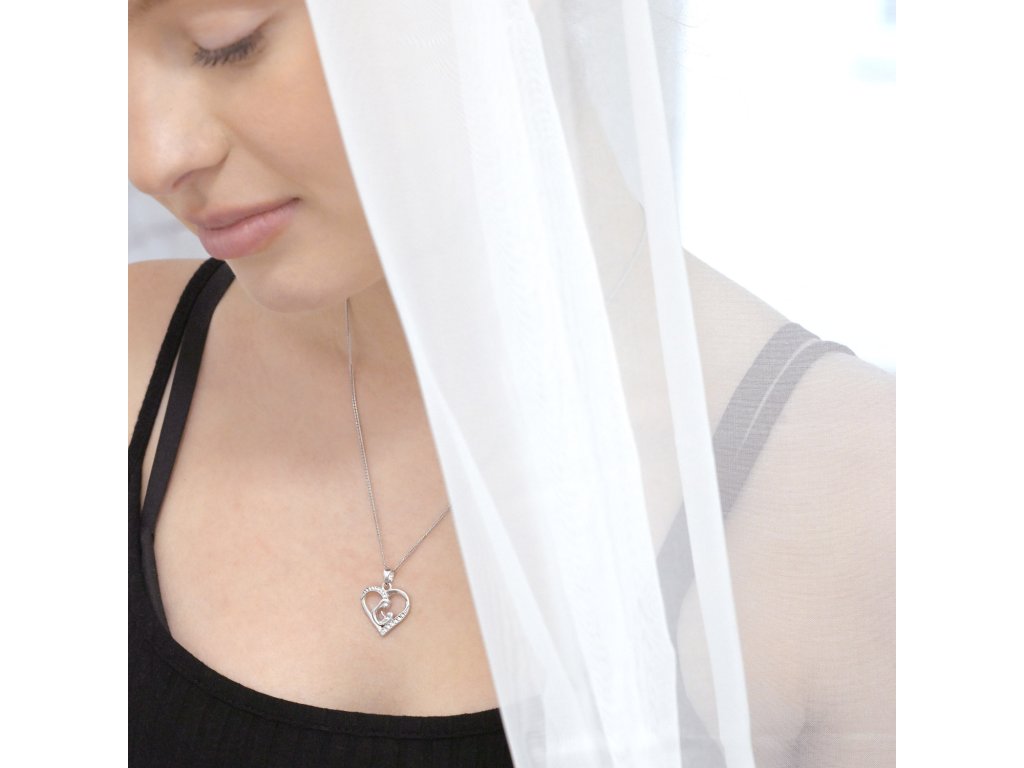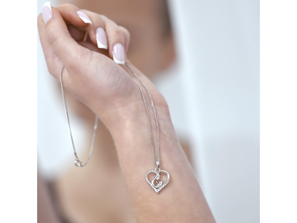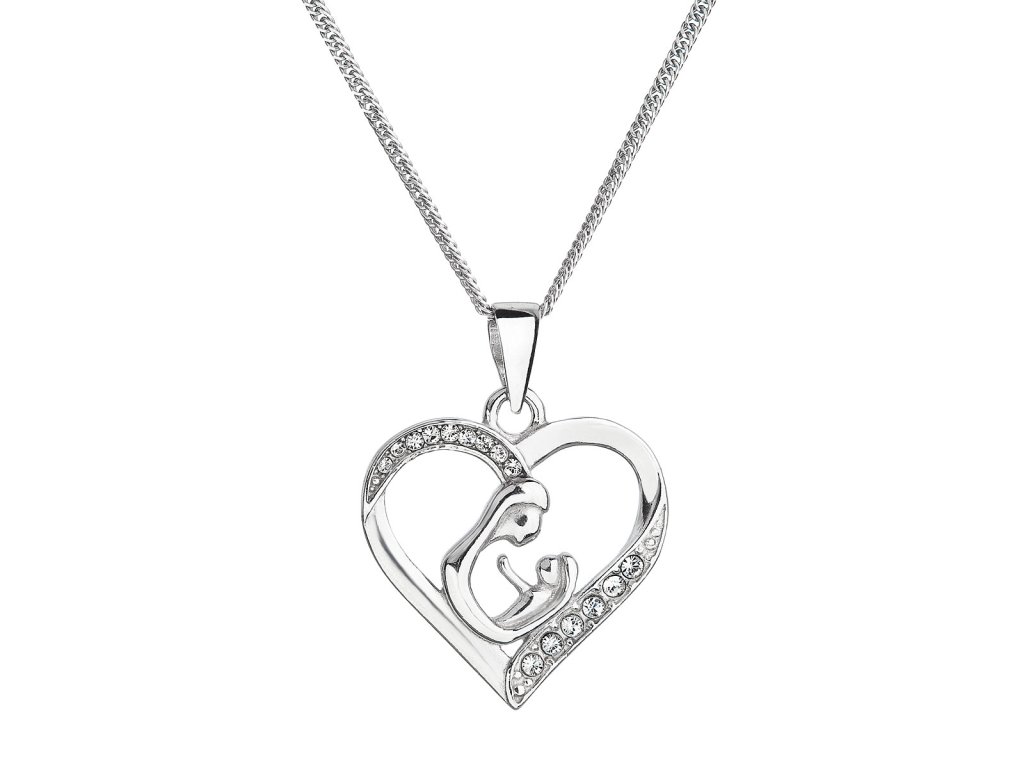 Stříbrný náhrdelník matka a dítě se Swarovski krystaly bílý 32073.1