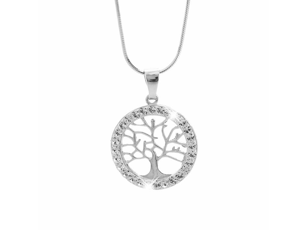 Stříbrný náhrdelník prořezávaný strom života s krystaly Swarovski Crystal (Stříbro 925/1000)
