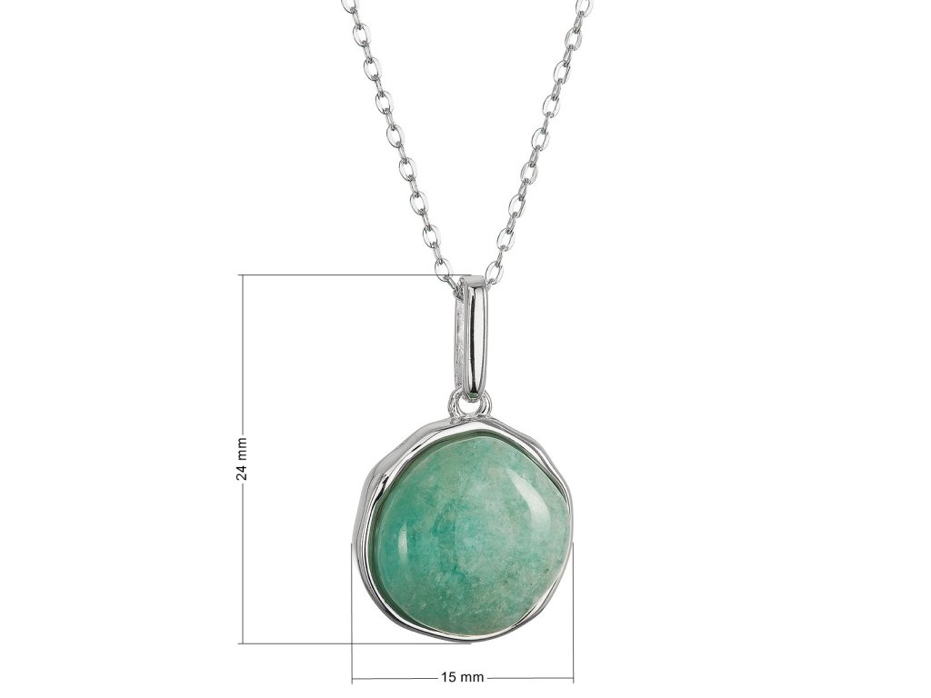 Náhrdelník je vytvořen ze stříbra ryzosti 925/1000 s rhodiovanou úpravou, která poskytuje šperku maximální ochranu a čistý, zářivý lesk. Precizně zasazený přírodní amazonit v sytě zelené barvě zaplňuje kulatý přívěsek s jemně zvlněným okrajem. Jemná stříbrná linka lemující kámen vytváří harmonický a přesto dynamický celek, který zachycuje energii přírody v jediném okamžiku.