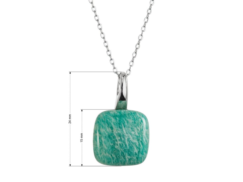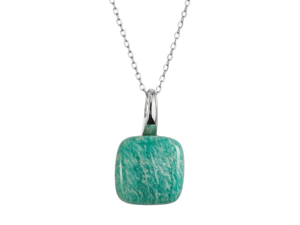 Náhrdelník s přívěskem je uměleckým dílem, které zachycuje dechberoucí krásu přírodní divočiny. Prémiové stříbro ryzosti 925/1000 s povrchovou úpravou rhodiem, které chrání šperk před oxidací a poškrábáním, nese luxusní přívěsek osazený čtvercovým přírodním amazonitem v sytě zelené barvě s charakteristickým žíháním. Každý kámen je naprosto originální, stejně jako vy.