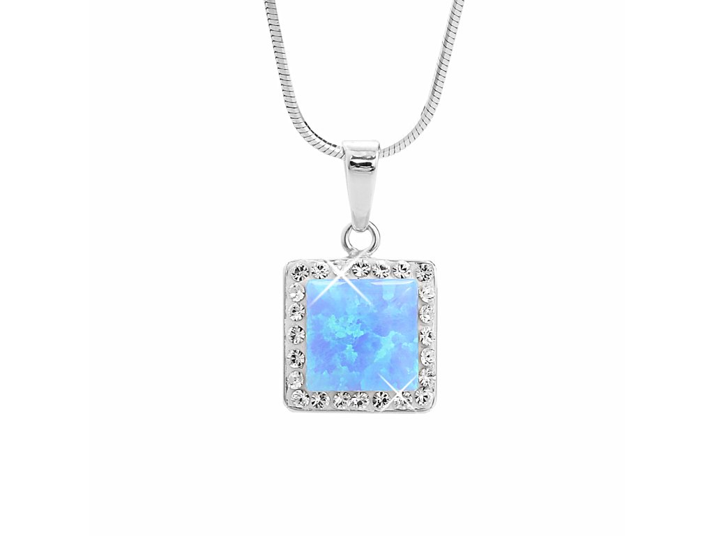 Stříbrný náhrdelník s čtvercovým opálem a krystaly Swarovski Blue velký (Stříbro 925/1000)