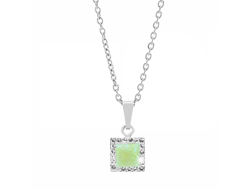 Stříbrný náhrdelník s čtvercovým opálem a krystaly Swarovski Green malý (Stříbro 925/1000)