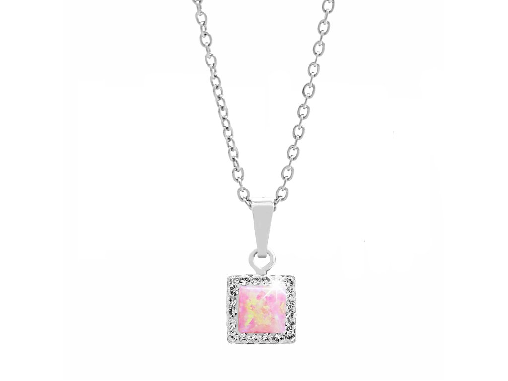 Stříbrný náhrdelník s čtvercovým opálem a krystaly Swarovski Rose malý (Stříbro 925/1000)