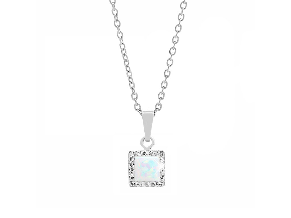 Stříbrný náhrdelník s čtvercovým opálem a krystaly Swarovski White malý (Stříbro 925/1000)