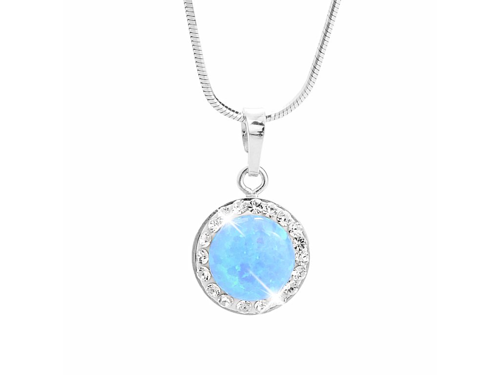 Stříbrný náhrdelník s kulatým opálem a krystaly Swarovski Blue velký (Stříbro 925/1000)