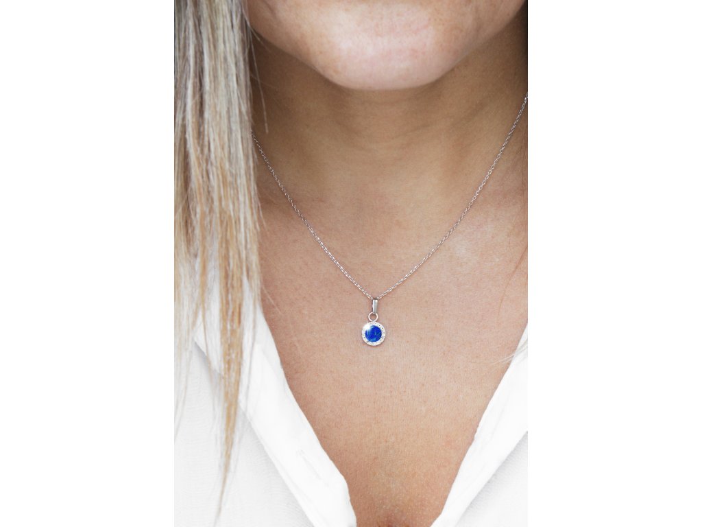 Stříbrný náhrdelník s kulatým opálem a krystaly Swarovski Dark Blue malý (Stříbro 925/1000)