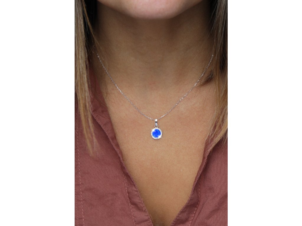 Stříbrný náhrdelník s kulatým opálem a krystaly Swarovski Dark Blue velký (Stříbro 925/1000)