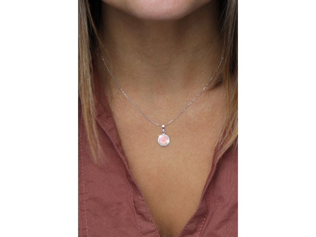 Stříbrný náhrdelník s kulatým opálem a krystaly Swarovski Rose velký (Stříbro 925/1000)