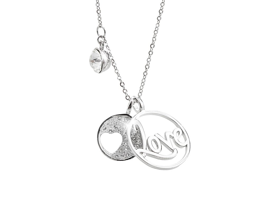 Stříbrný náhrdelník s kulatými přívěsky Love a krystaly Swarovski Crystal (Stříbro 925/1000)