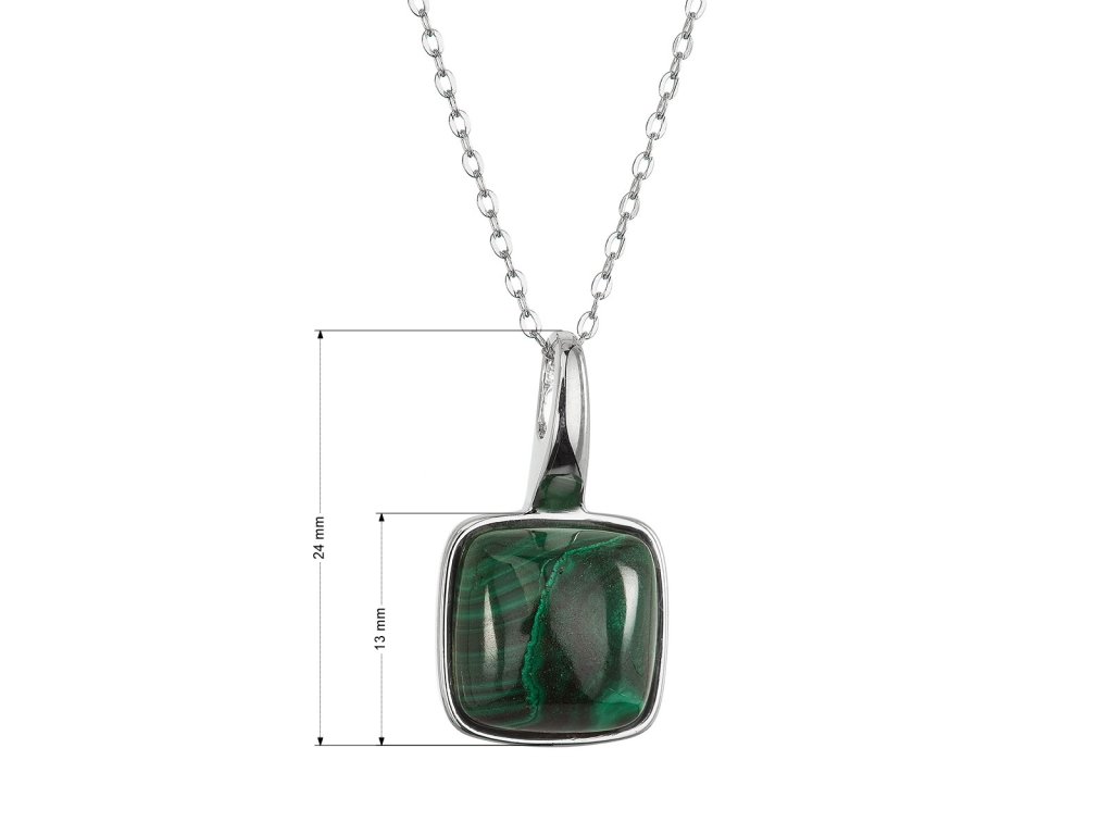 Náhrdelník s přívěskem je uměleckým dílem, které spojuje jemný lesk rhodiovaného stříbra ryzosti 925/1000 s divokou krásou přírodního malachitu. Rhodium chrání stříbro proti poškrábání, zčernání i zežloutnutí. Luxusní přívěsek ve tvaru dokonalého čtverce osazený sytě zeleným malachitem s charakteristickým žíháním vás vtáhne do světa nezkrotné energie a vnitřní rovnováhy. Geometrický tvar kamene symbolizuje stabilitu, zatímco jeho intenzivní zelená barva připomíná hloubku lesních hlubin.