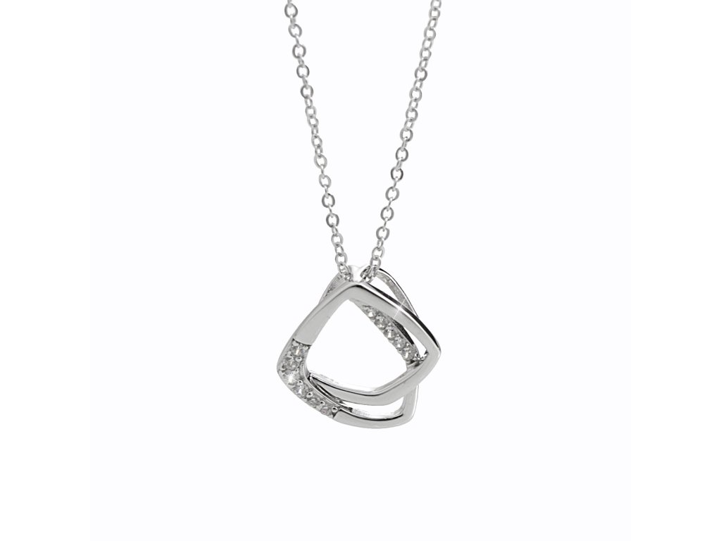 Stříbrný náhrdelník s nepravidelnými čtverci a s krystaly Swarovski Crystal (Stříbro 925/1000)