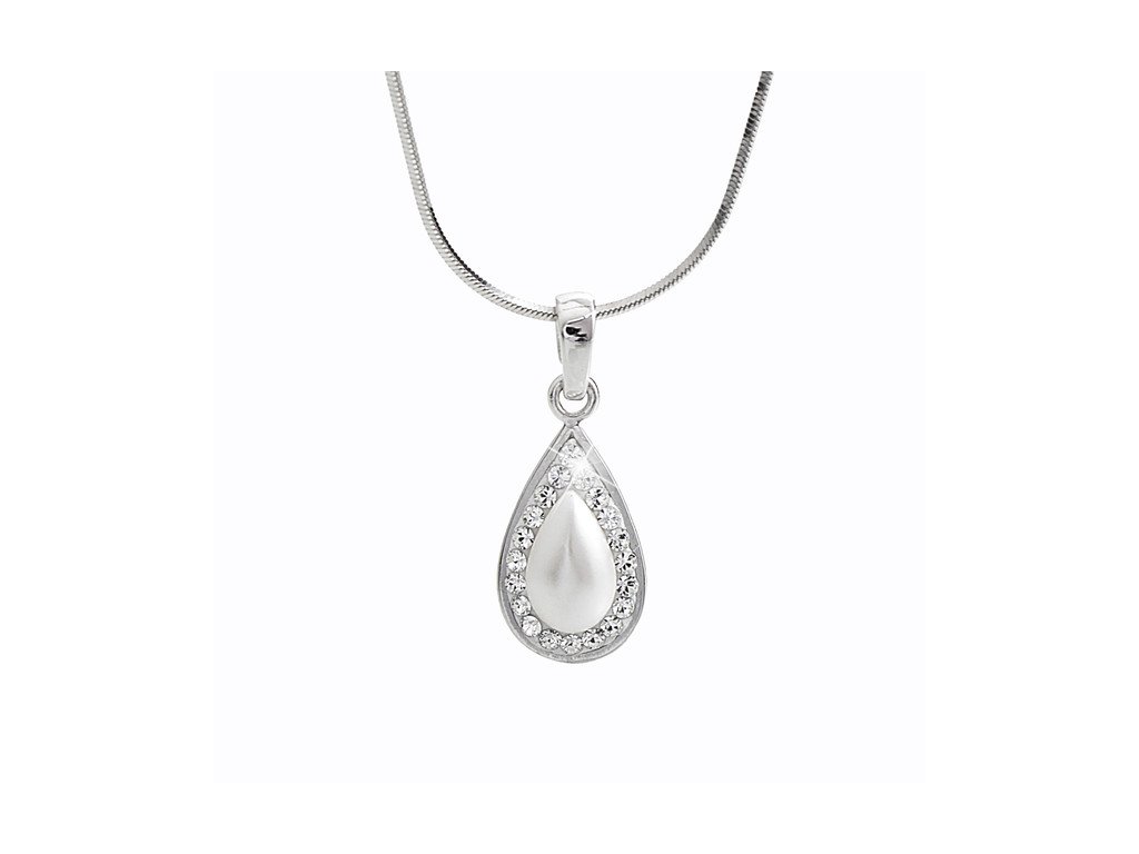 Stříbrný náhrdelník s perlovou slzou a krystaly Swarovsky Crystal (Stříbro 925/1000)