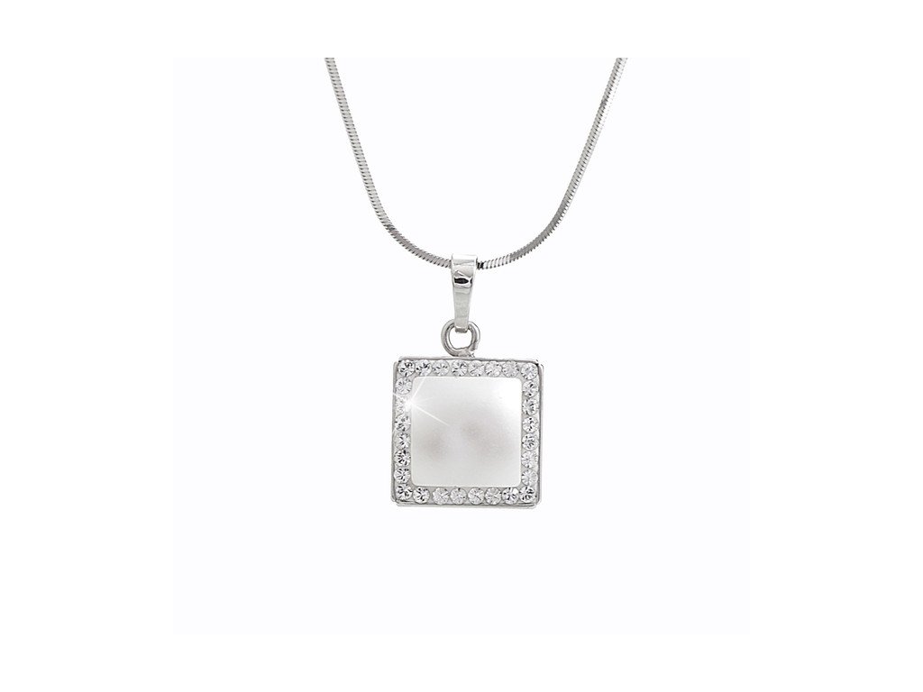 Stříbrný náhrdelník S perlovým čtvercem a krystaly Swarovski Crystal velký (Stříbro 925/1000)