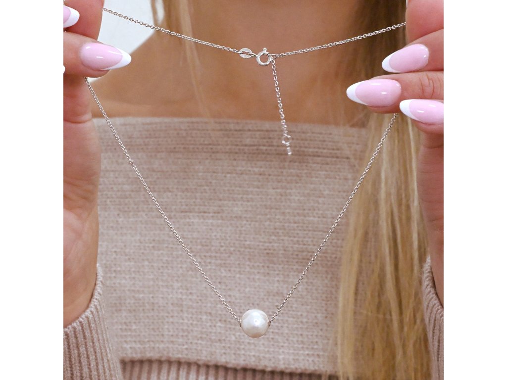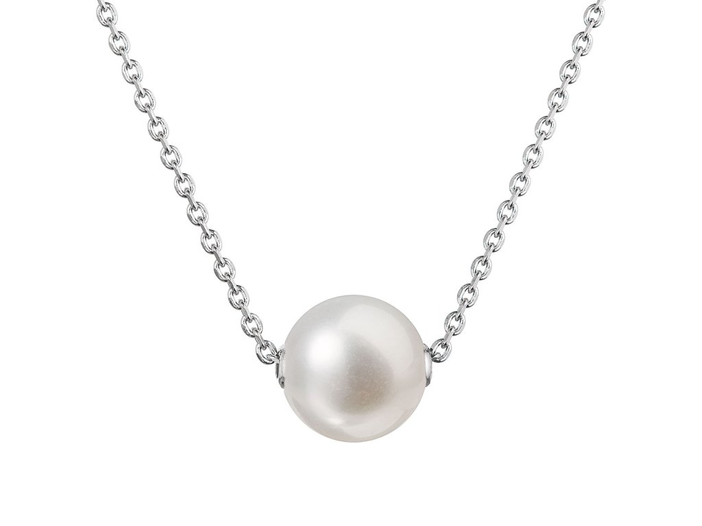 Stříbrný náhrdelník s pevnou bílou říční perlou na řetízku 22047.1