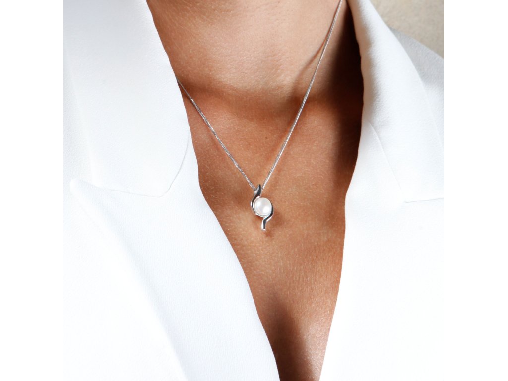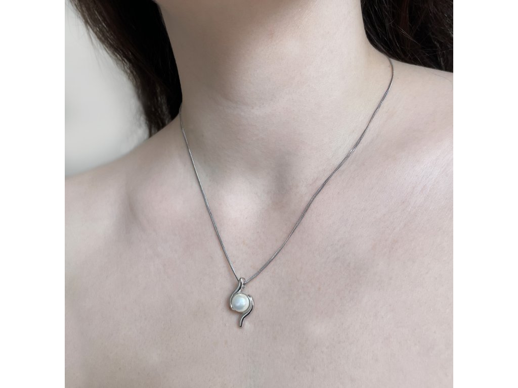 Jemný stříbrný náhrdelník s krásnou říční perlou vloženou mezi vlnky vám přidá na eleganci. Na náhrdelník bylo použito stříbro o ryzosti 925/1000, jehož povrch prošel úpravou rhodiem. Rhodium šperk ochrání proti zčernání, zežloutnutí nebo poškrábání. Šperk vyrábíme zcela bez přítomnosti niklu, je vhodným doplňkem i pro alergiky.Stříbrný náhrdelník 22038.1 s pravou říční perlou pro vás ručně vyrobily naše šikovné šperkařky. Poctivou ruční práci dokládá pečet kvality na našich stránkách a certifikát pravosti říční perly je přiložen u šperku.