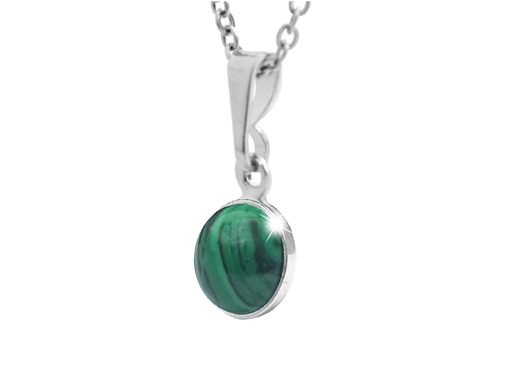Stříbrný náhrdelník s pravým kamenem Malachit (Stříbro 925/1000)