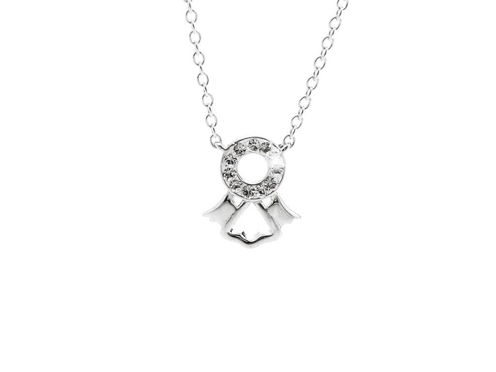 Stříbrný náhrdelník s přívěskem anděla jehož hlavička je osázená krystaly Swarovski Crystal (Stříbro 925/1000)