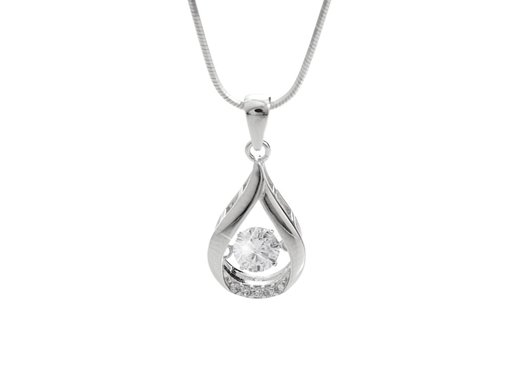 Stříbrný náhrdelník s přívěskem kapky a pohyblivým zirkonem Crystal (Stříbro 925/1000)