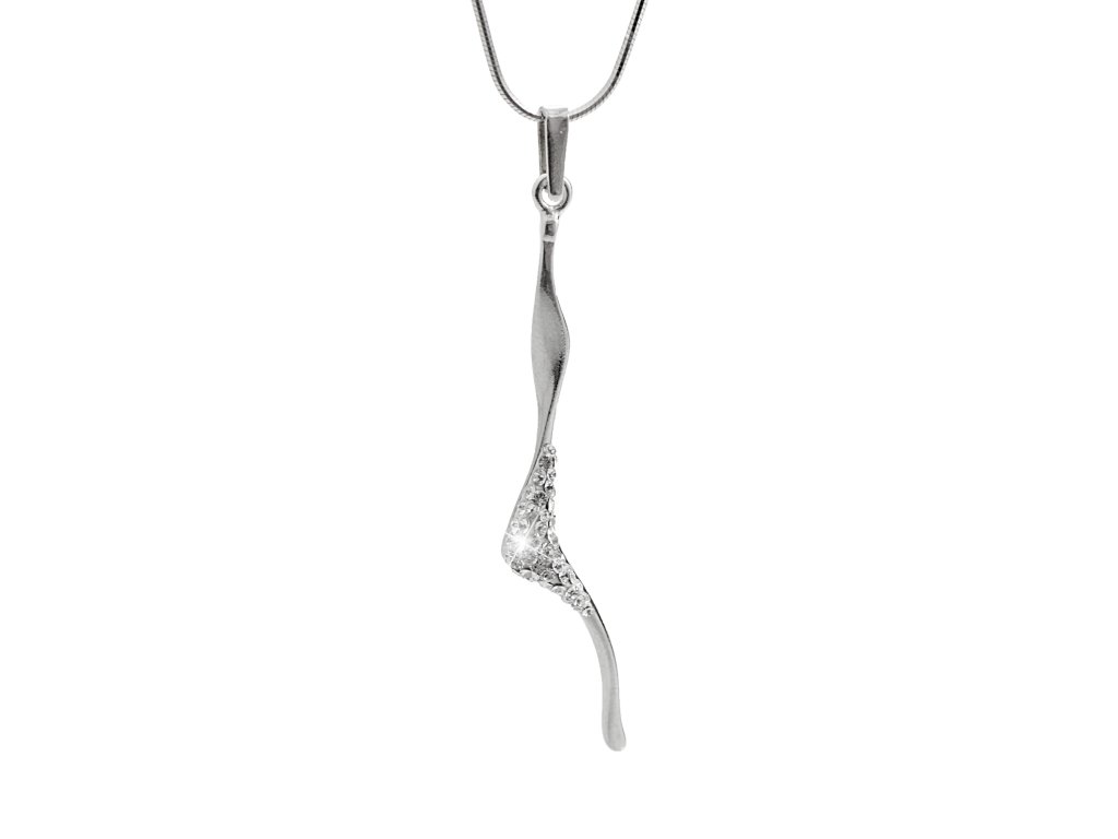 Stříbrný náhrdelník s přívěskem křivé dlouhé vlnky a krystaly Swarovski Crystal (Stříbro 925/1000)