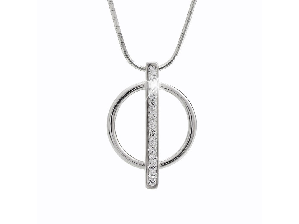 Stříbrný náhrdelník s přívěskem kruhu s čárkou a krystaly Swarovski Crystal (Stříbro 925/1000)