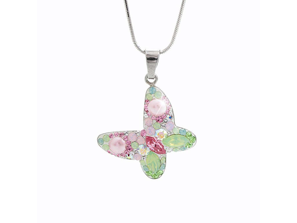 Stříbrný náhrdelník s přívěskem motýla a krystaly Swarovski Multi velký (Stříbro 925/1000)