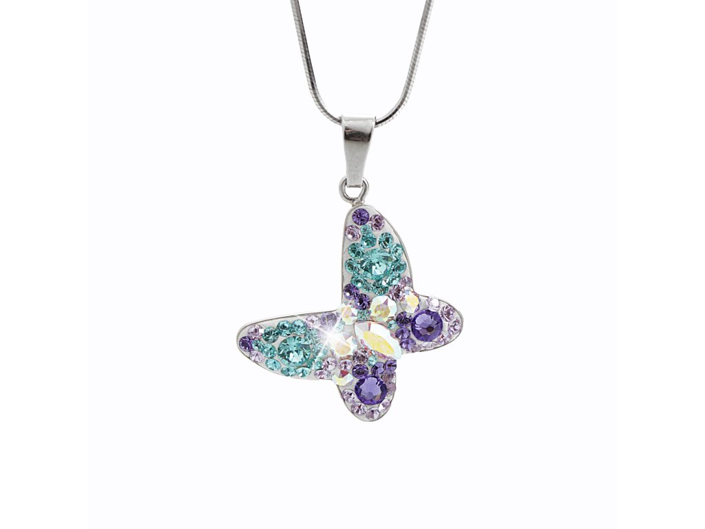 Stříbrný náhrdelník s přívěskem motýla a krystaly Swarovski Purple velký (Stříbro 925/1000)