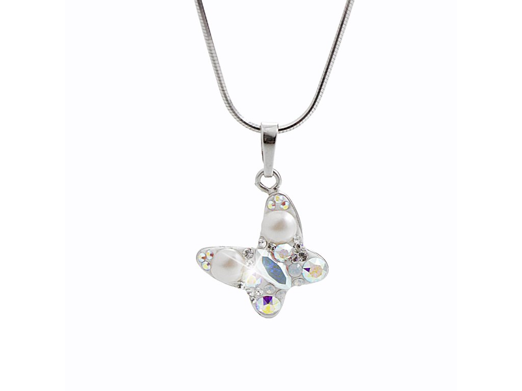 Stříbrný náhrdelník s přívěskem motýla a krystaly Swarovski White střední (Stříbro 925/1000)