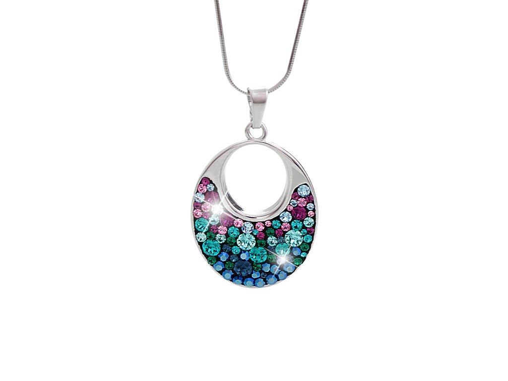 Stříbrný náhrdelník s přívěskem oválu s dírou a krystaly Swarovski Paví střední (Stříbro 925/1000)