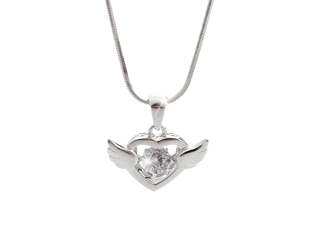 Stříbrný náhrdelník s přívěskem srdce s křídly a pohyblivý zirkon Crystal (Stříbro 925/1000)