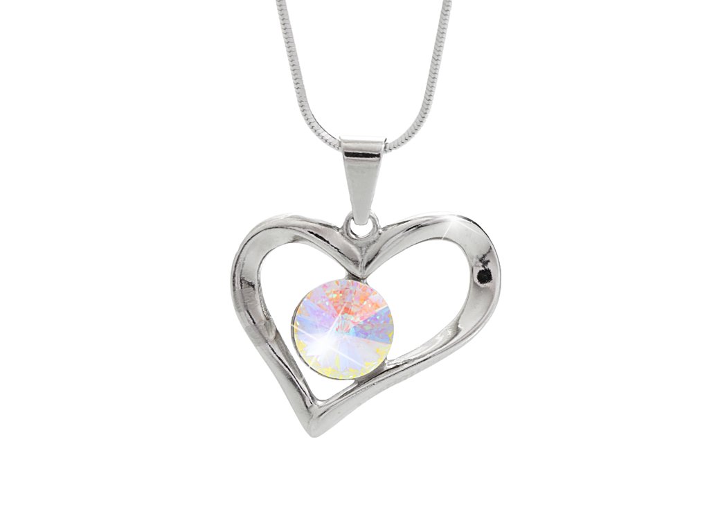 Stříbrný náhrdelník s přívěskem srdce v jehož středu je rivolka Swarovski AB (Stříbro 925/1000)