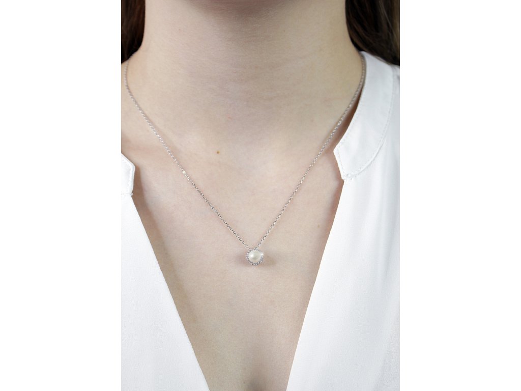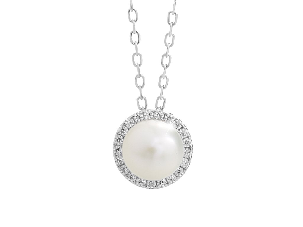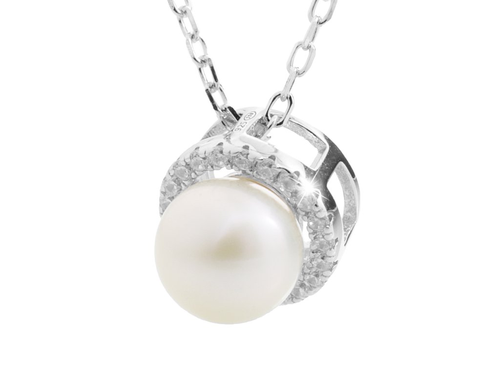 Stříbrný náhrdelník s říční perlou a obvodem krystalů Swarovski Crystal (Stříbro 925/1000)