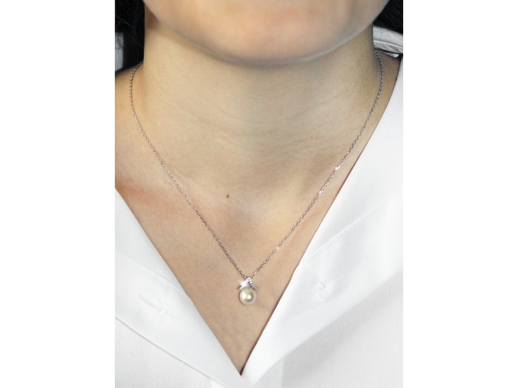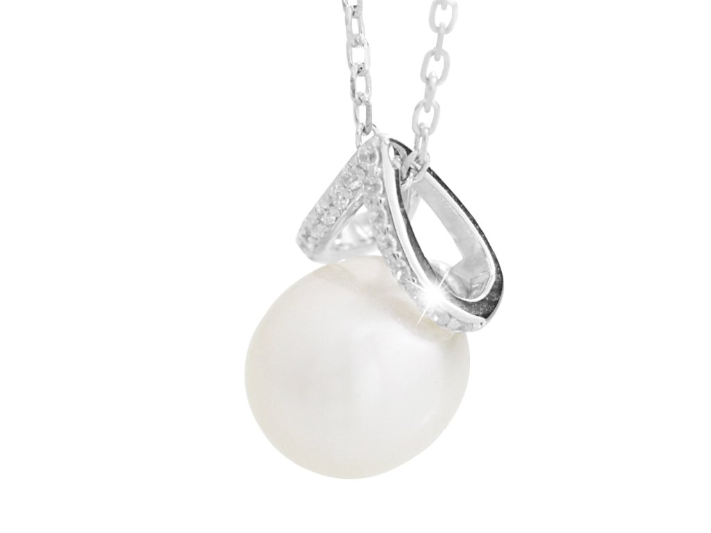 Stříbrný náhrdelník s říční perlou a stříškou z Kubických zirkonů Crystal (Stříbro 925/1000)