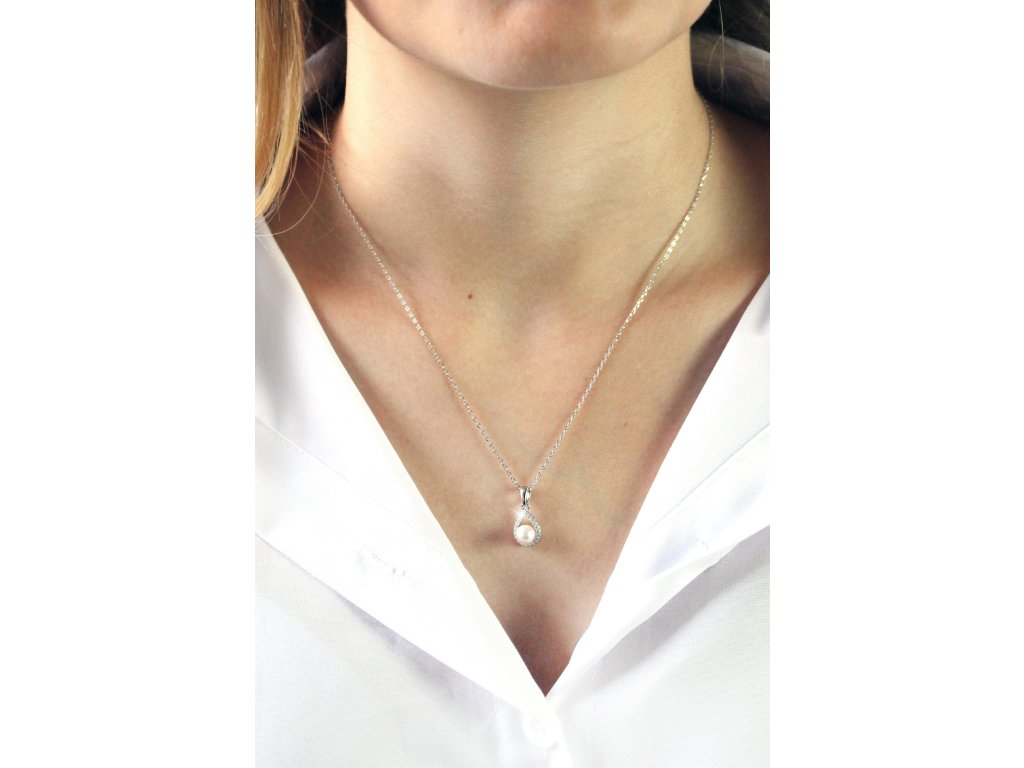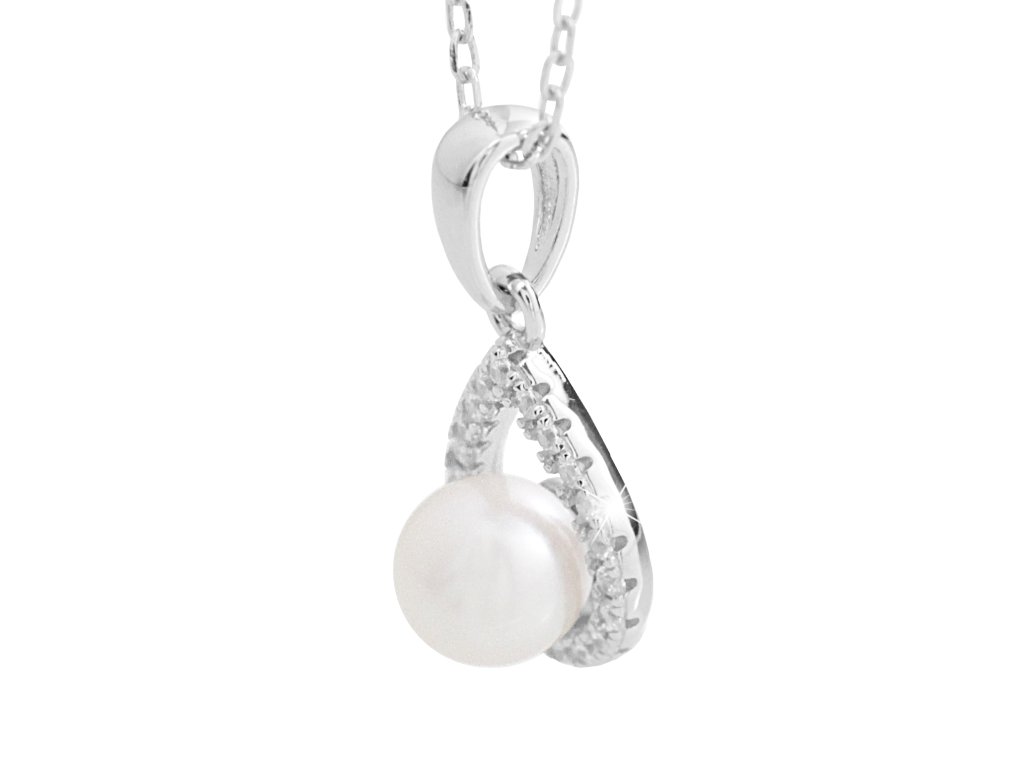 Stříbrný náhrdelník s říční perlou v obvodové kapce Kubických zirkonů Crystal (Stříbro 925/1000)