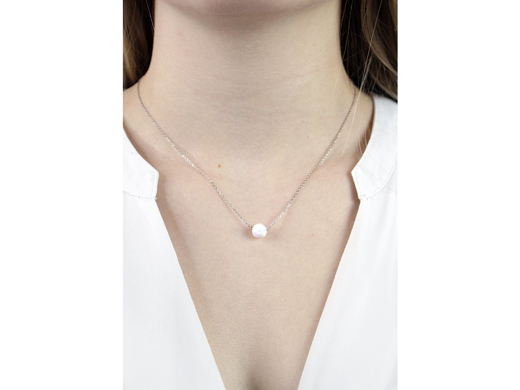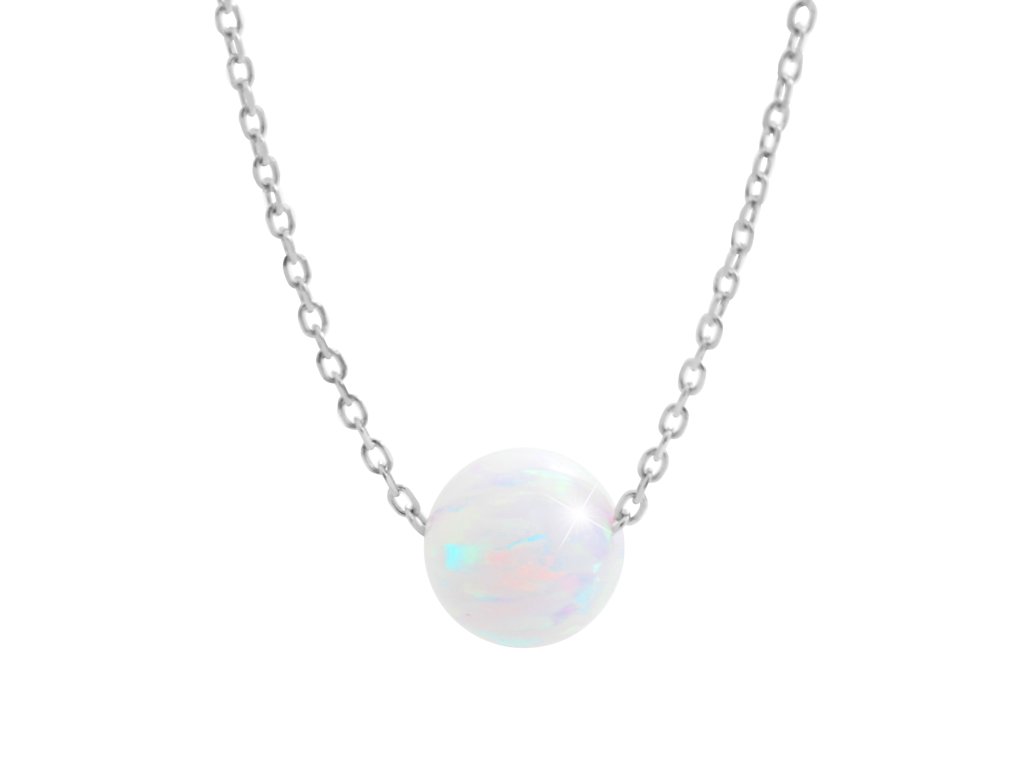 Stříbrný náhrdelník se samostatnou bílou opálovou kuličkou na řetízku (Stříbro 925/1000)