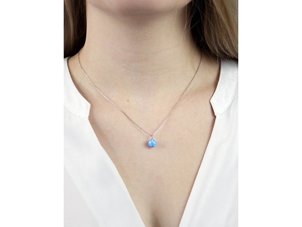 Stříbrný náhrdelník se samostatnou modrou ketlovanou opálovou kuličkou (Stříbro 925/1000)