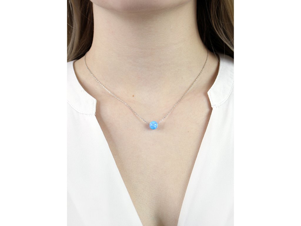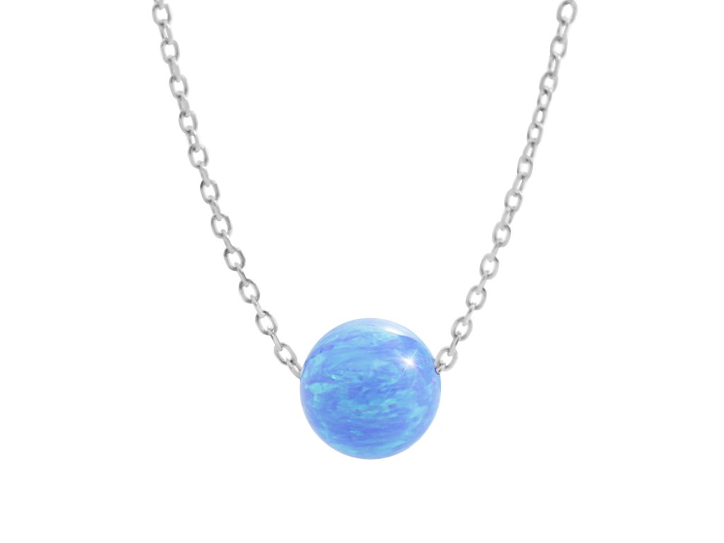 Stříbrný náhrdelník se samostatnou modrou opálovou kuličkou na řetízku (Stříbro 925/1000)