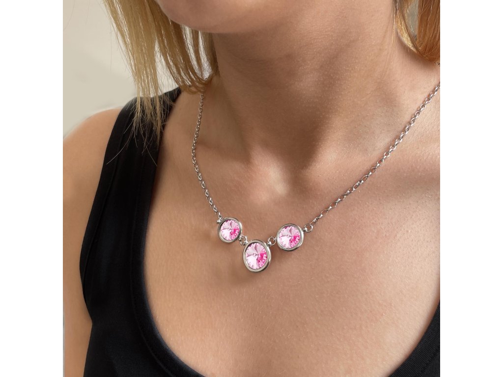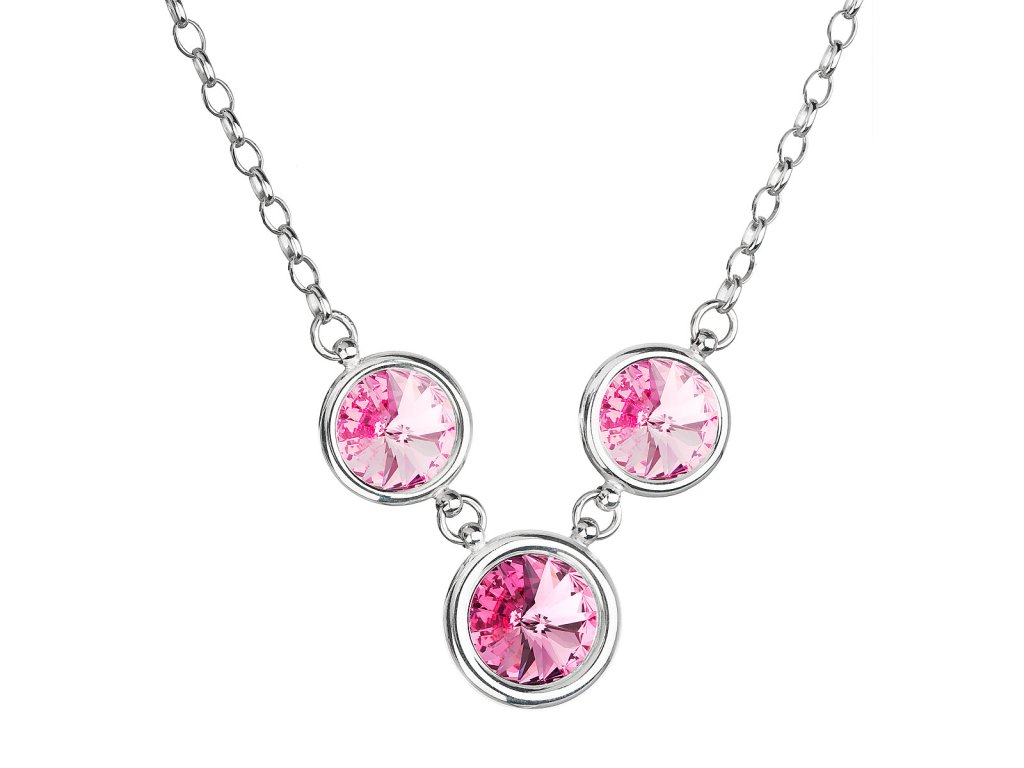 Stříbrný náhrdelník se Swarovski krystaly růžový kulatý 32033.3 rose