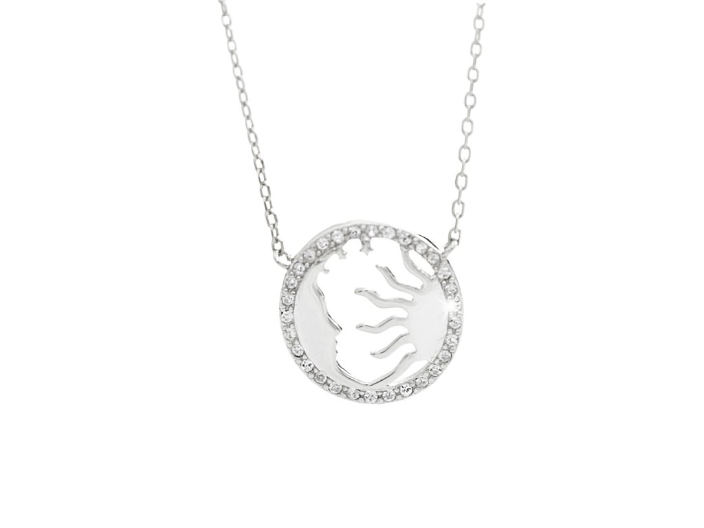 Stříbrný náhrdelník slunce a měsíc s krystaly Swarovski Crystal (Stříbro 925/1000)