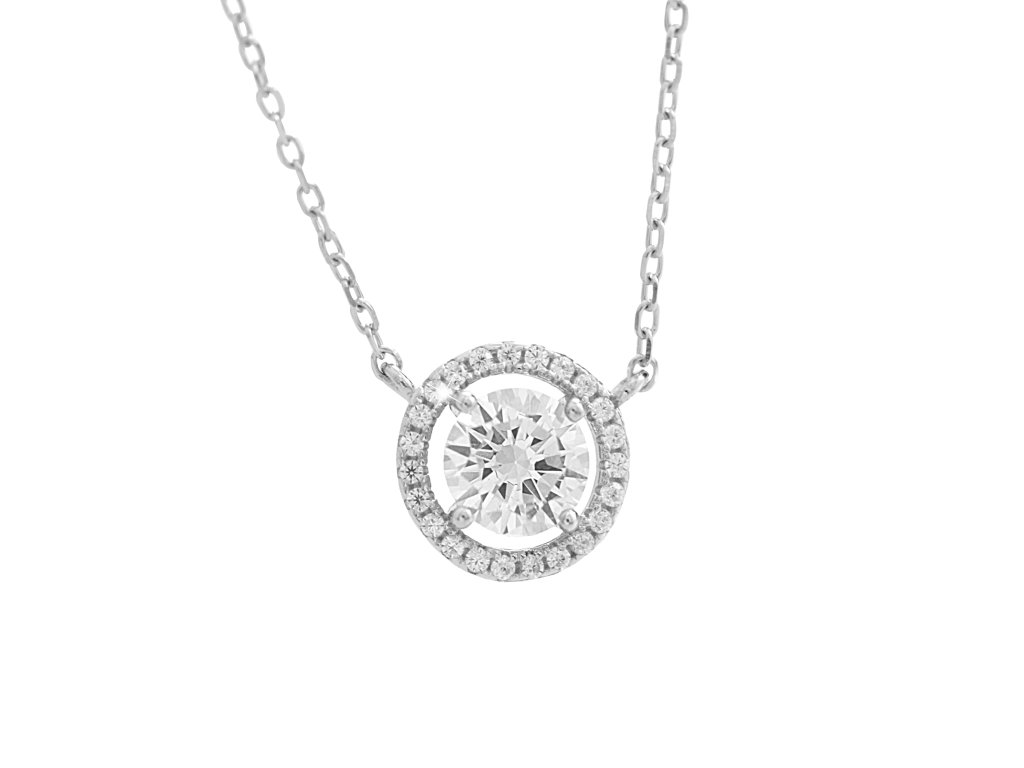 Stříbrný náhrdelník velký kulatý zirkon a drobné Kubické zirkony kolem něj Crystal (Stříbro 925/1000)